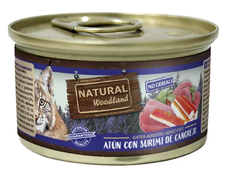 Pescado (Atún 50 %) Carne fresca (Pollo 10 %), Moluscos y crustáceos (Surimi de cangrejo 1 %), Aceite y grasas.