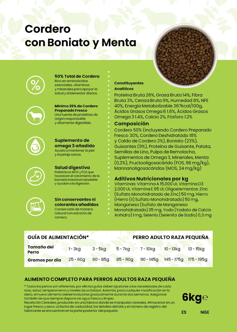 Cordero con Boniato y Menta Raza Pequeña 6 kg