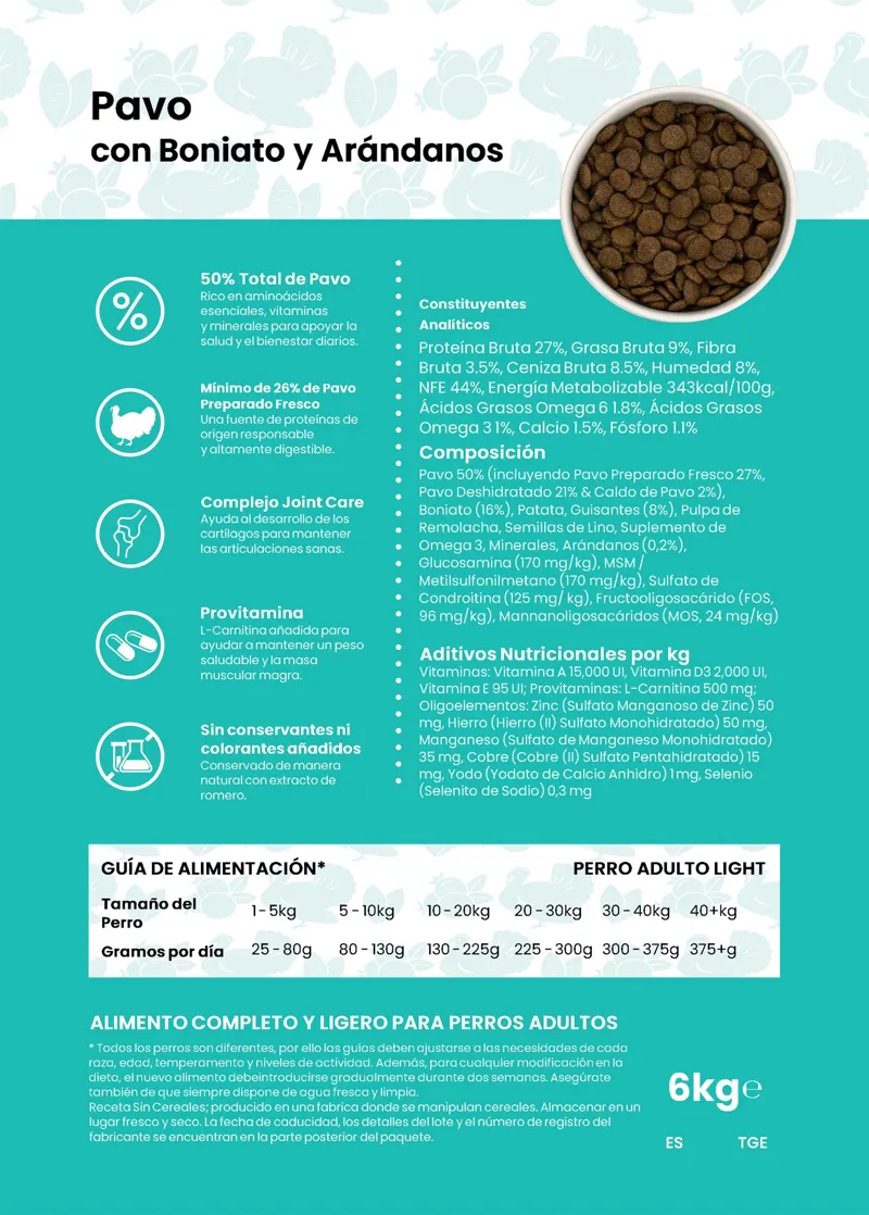 Light-Pavo con Boniato y Arándanos 6 kg