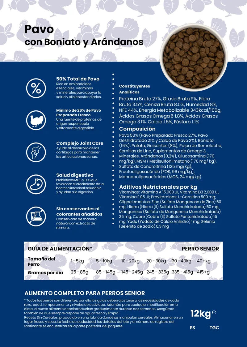 Light-Pavo con Boniato y Arándanos Senior 12 kg