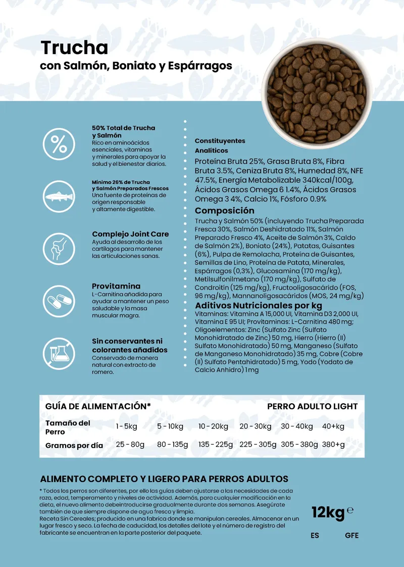 Light-Trucha con Salmón, Boniato y Espárragos 12 kg