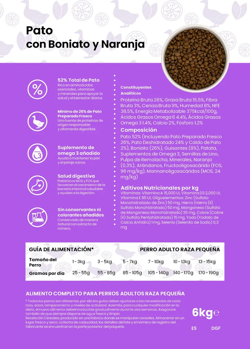 Pato con Boniato y Naranja Raza Pequeña 6 kg