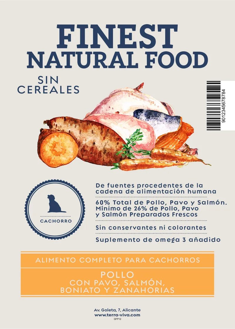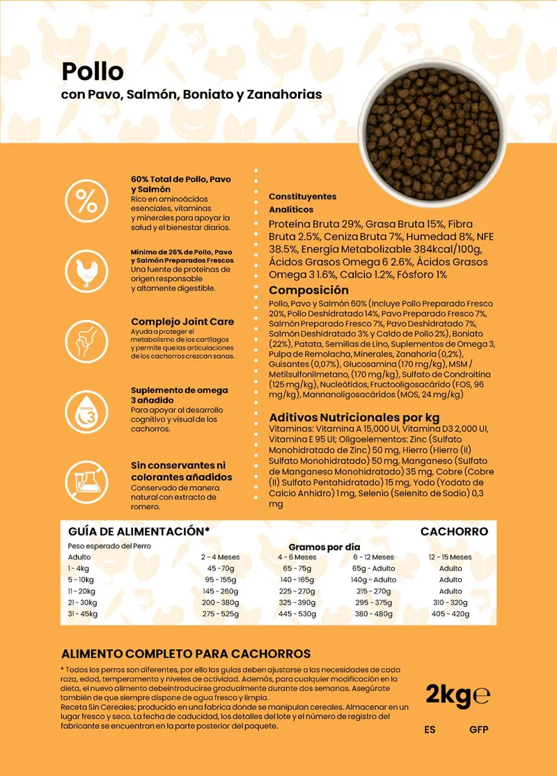 Pollo con Pavo, Salmón, Boniato y Zanahorias Cachorro 2 kg
