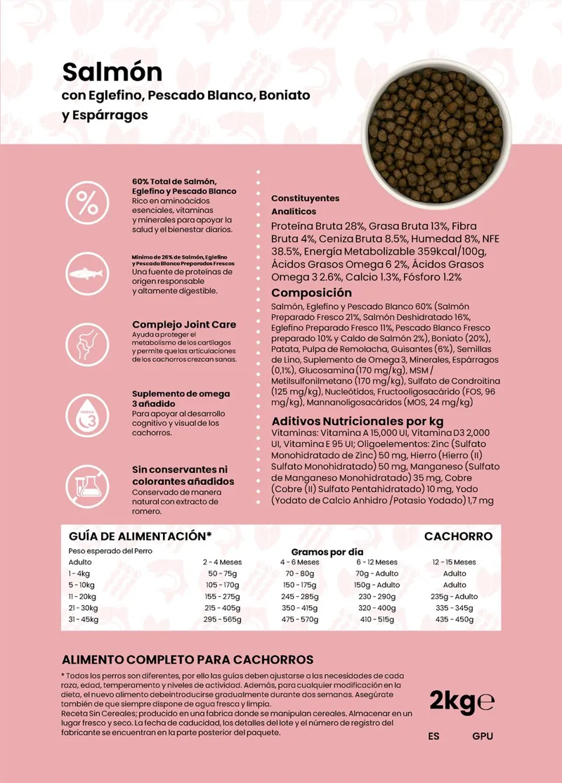 Salmón con Eglefino, Pescado Blanco, Boniato y Espárragos Cachorro 2 kg