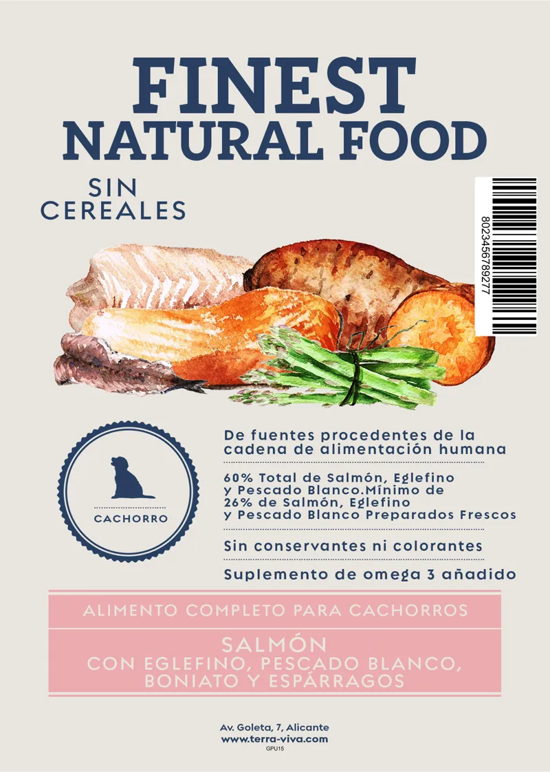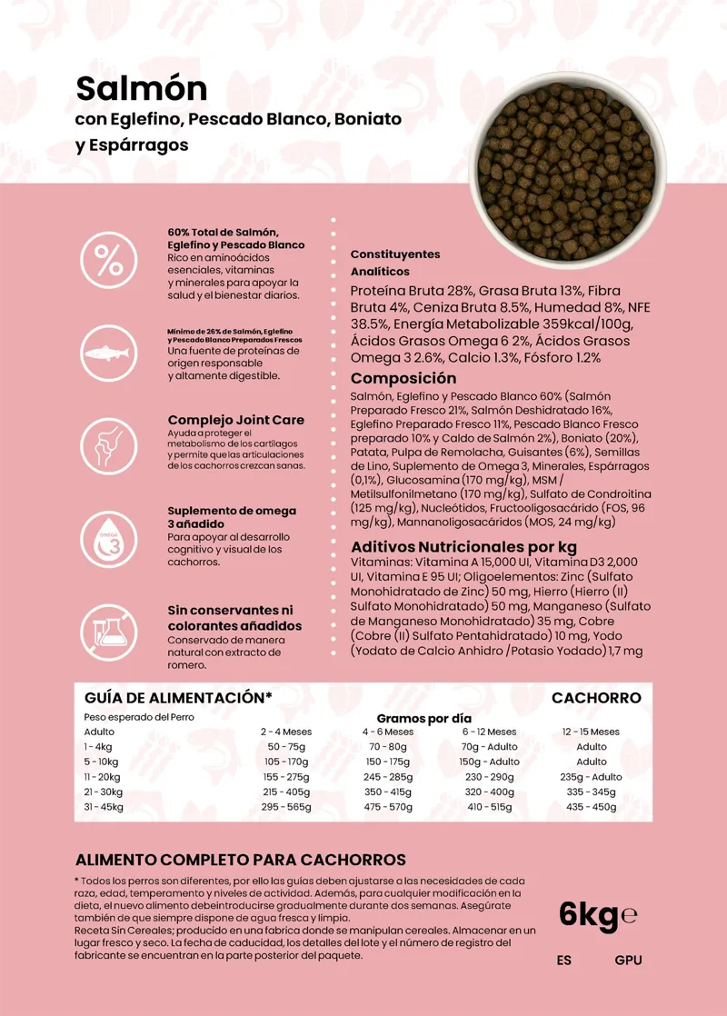 Salmón con Eglefino, Pescado Blanco, Boniato y Espárragos Cachorro 6 kg